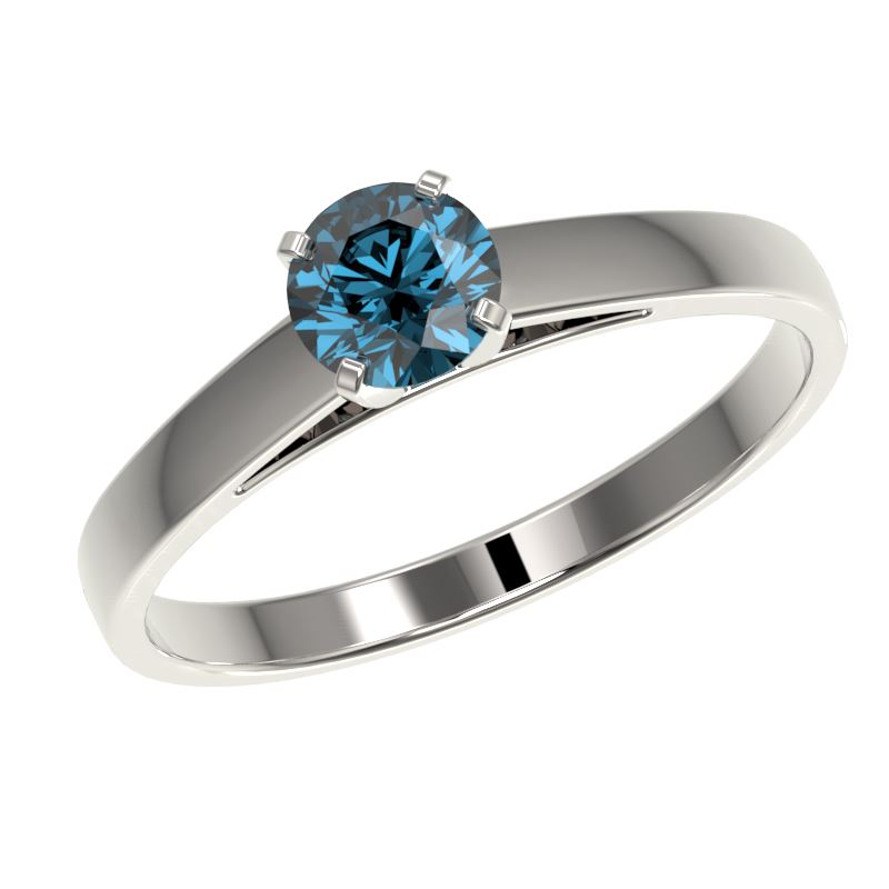 REF-50H3A -32958 ---- 0.50 CTW Certified Intense Blue SI Diamond Solitaire Engagement Ring 10K White Gold ---- Luxury Designer Brand Ring Appraised at $3,650 Certificate Number US32958 10k White gold, Ring Size is 7, Ring measuring approx. Uniform, weighing in total approx. 2.6 grams. Made in the USA and is stamped 10k, Main stone 0.5 carat total weight containing 1 pieces of Intense Fancy Blue color with SI quality Round shape cut Diamond , Stone #2 carat total weight containing pieces of color with quality shape cut