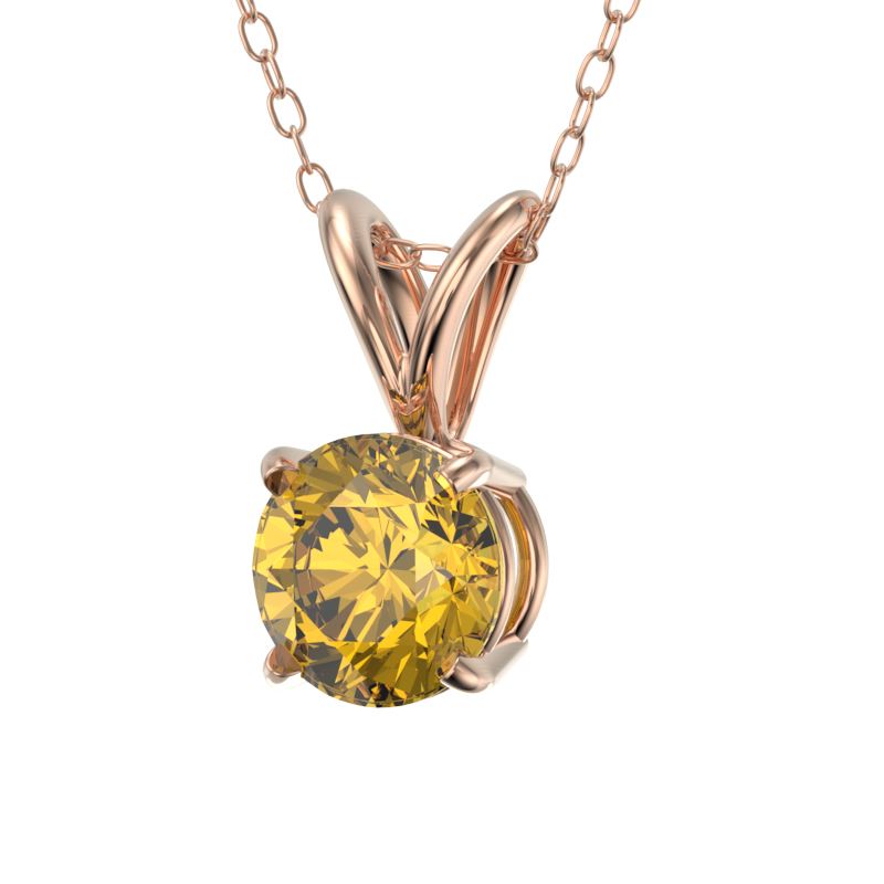 0.50 CTW Certified Intense Yellow SI Diamond Solitaire Necklace 10K Rose Gold ---- Luxury Designer Brand Necklace Appraised Retail Price at $3,750 ---- SKU Number US33162 10k Rose gold Necklace Size is 16 Incehs, Necklace measuring approx. Uniform, weighing in total approx. 2 grams. Made in the USA and is stamped 10k, Main stone 0.50 carat total weight containing 1 pieces of Intense Fancy Yellow color with SI quality Round shape cut Diamond , Stone #2 carat total weight containing pieces of color with quality shape cut