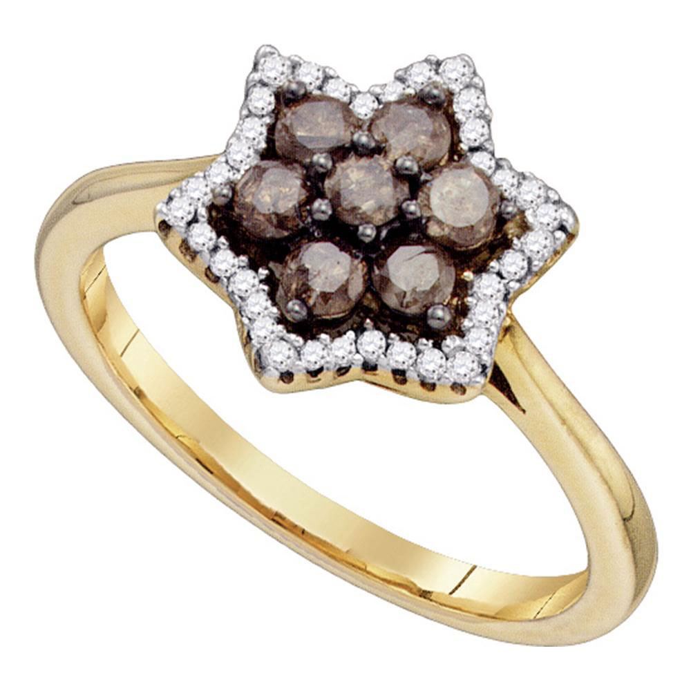 REF-30M2H- SKU: GD74873 ---- 0.50 CTWCognac-brown Color Diamond Cluster Ring 10KT Yellow Gold