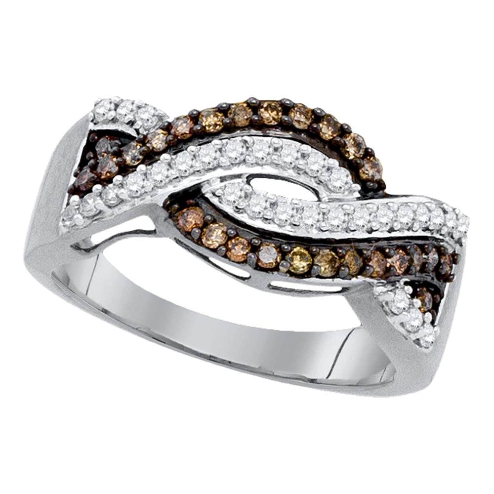 REF-30M2H- SKU: GD90439 ---- 0.50 CTWCognac-brown Color Diamond Crossover Ring 10KT White Gold