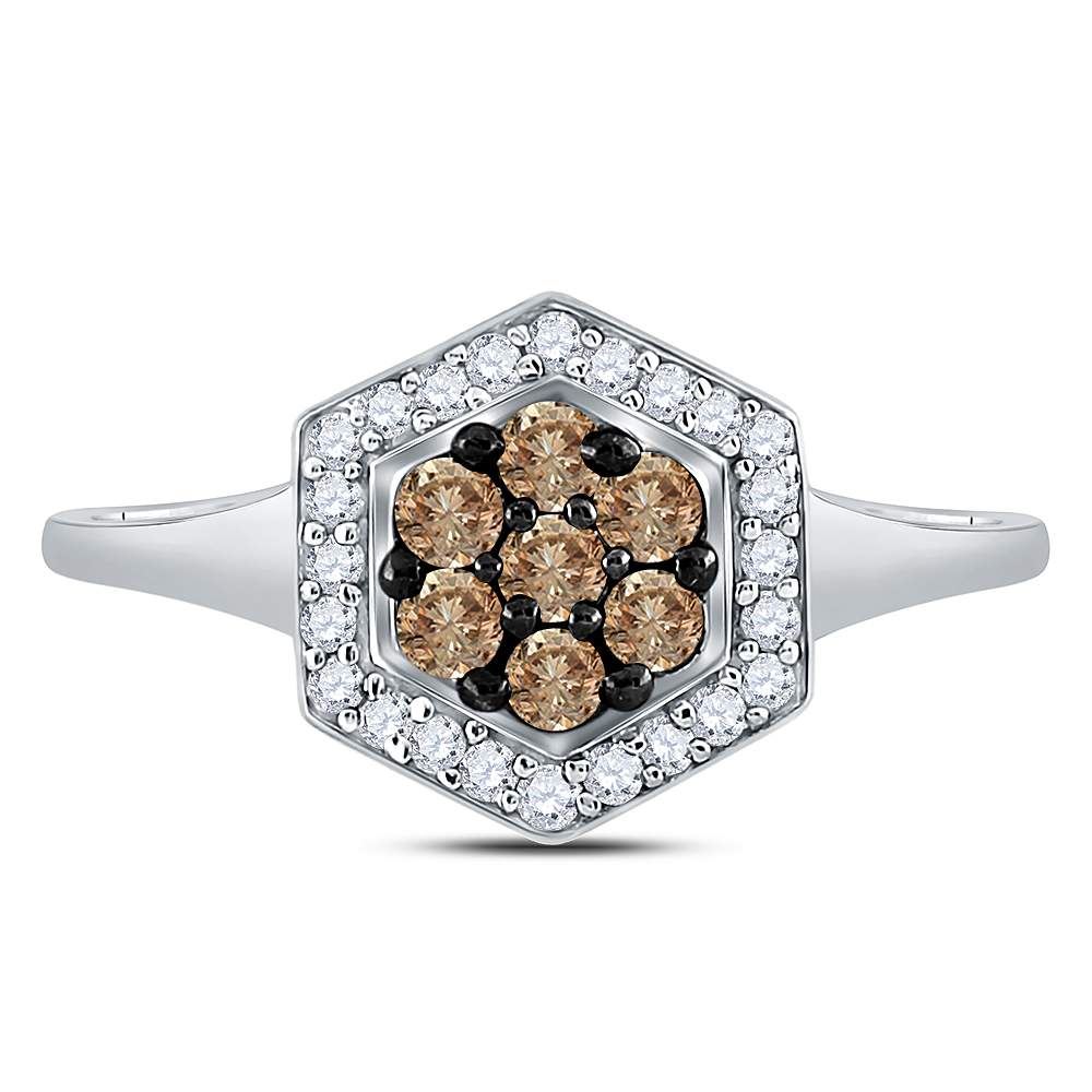 REF-24F2N- SKU: GD58528 ---- 0.50 CTWCognac-brown Color Diamond Polygon Cluster Ring 10KT White Gold