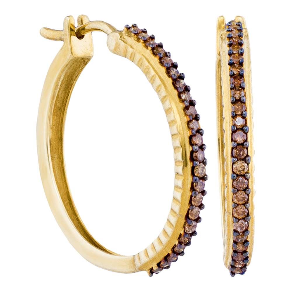 REF-37W5K- SKU: GD90424 ---- 0.50 CTWCognac-brown Color Diamond Single Row Hoop Earrings 10KT Yellow Gold