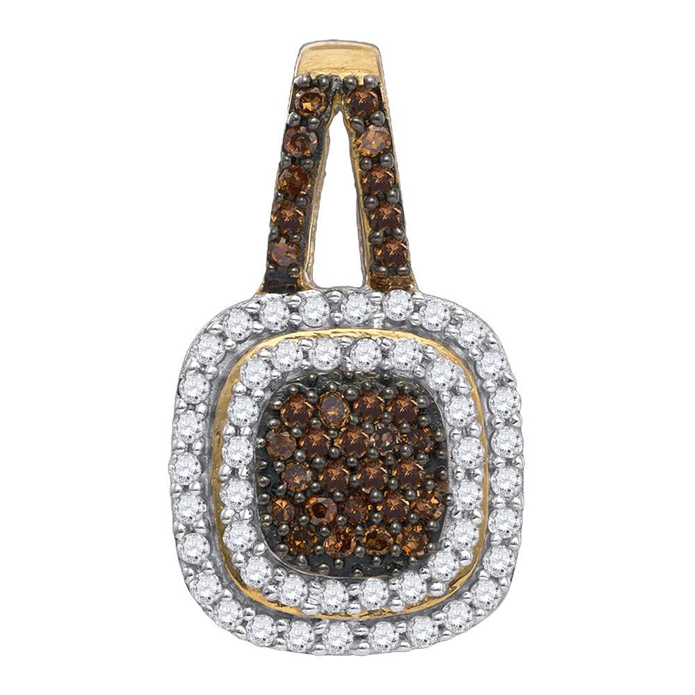 REF-30M2H- SKU: GD70905 ---- 0.50 CTWCognac-brown Color Diamond Square Pendant 10KT Yellow Gold