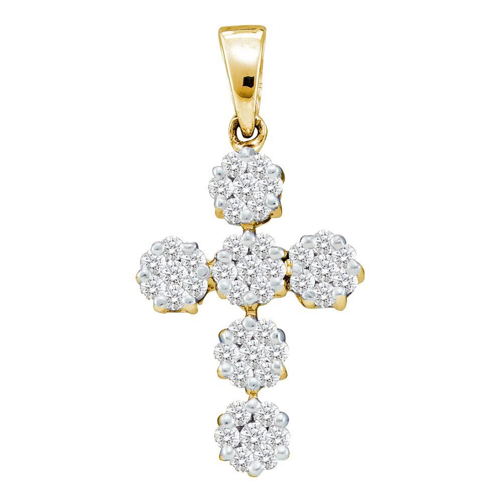 REF-44M9H- SKU: GD34321 ---- 0.50 CTWDiamond Cluster Cross Pendant 14KT Yellow Gold