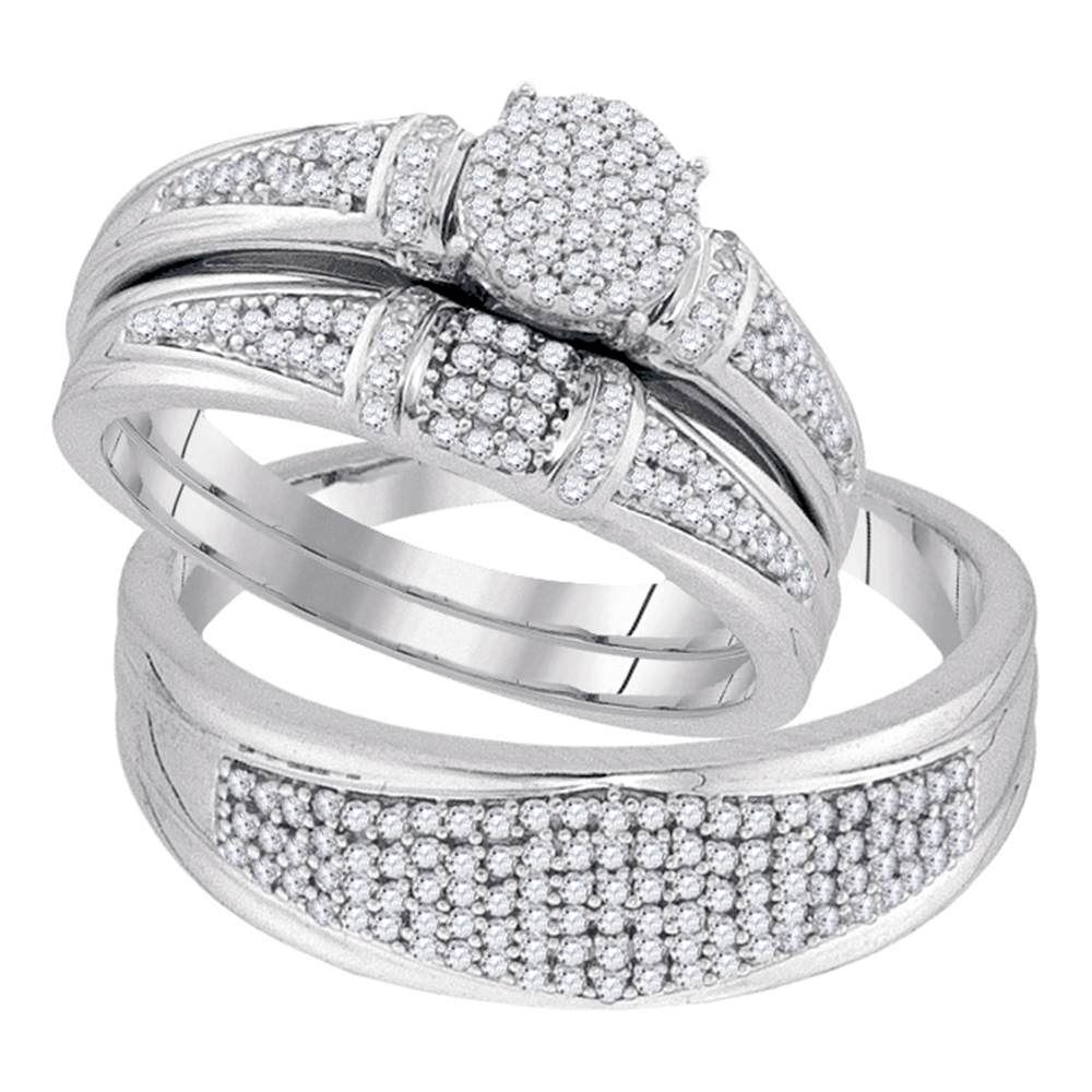 REF-64M4H- SKU: GD92064 ---- 0.50 CTWDiamond Cluster His & Hers Matching Trio Ring 10KT White Gold