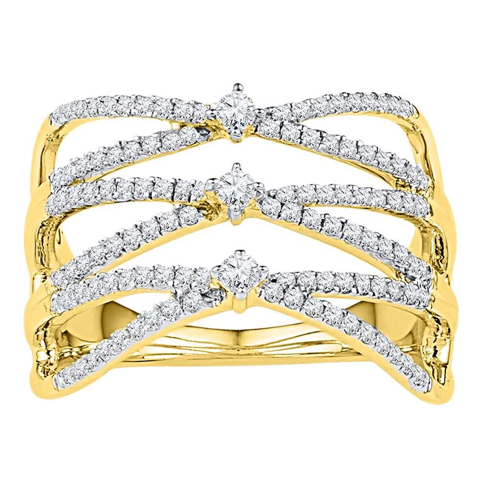REF-37X5Y- SKU: GD108817 ---- 0.50 CTWDiamond Crisscross Crossover Strand Ring 10KT Yellow Gold