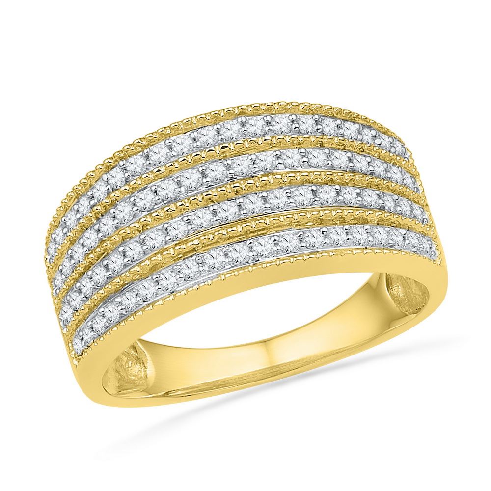 REF-47M9H- SKU: GD101316 ---- 0.50 CTWDiamond Four Row Milgrain Ring 10KT Yellow Gold