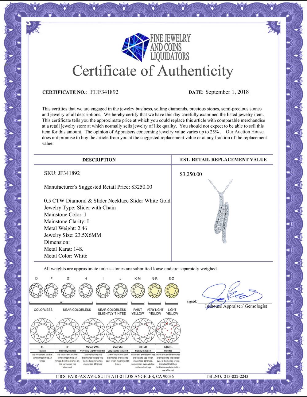 REF-42W4H - JF341892 ---- 0.5 CTW White Round Diamond Necklace 14K White Gold