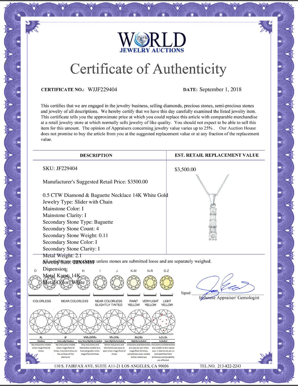 REF-45Y8X - JF229404 ---- 0.5 CTW White Round Diamond & Baguette Necklace 14K White Gold