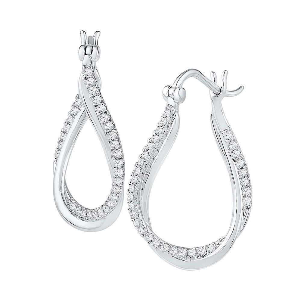 REF-52K4W- SKU: GD108525 ---- 0.50 CTWDiamond Oval Hoop Earrings 10KT White Gold