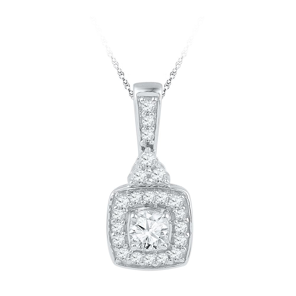 REF-52N4F- SKU: GD97434 ---- 0.50 CTWDiamond Solitaire Square Framed Pendant 10KT White Gold