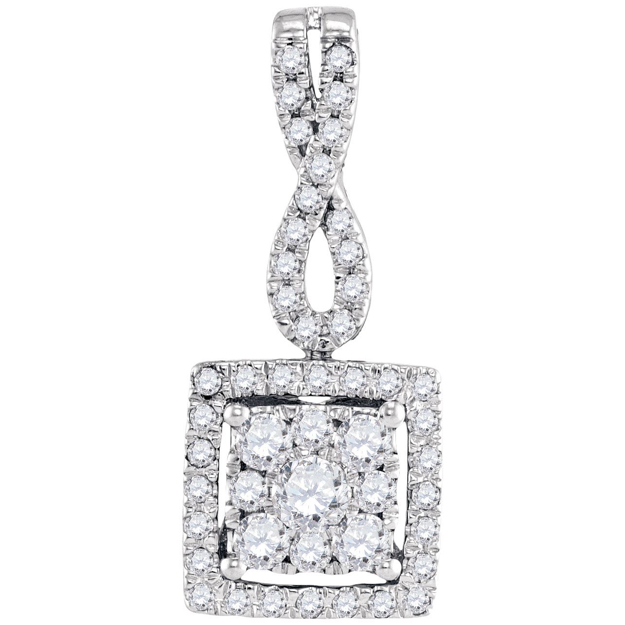 REF-40Y4X- SKU: GD95943 ---- 0.50 CTWDiamond Square Cluster Pendant 10KT White Gold