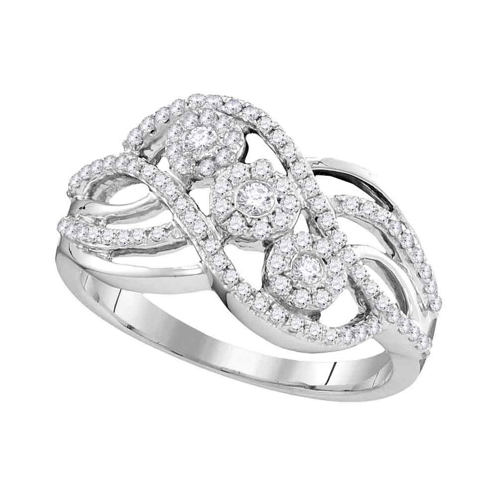 REF-49K5W- SKU: GD106849 ---- 0.50 CTWDiamond Triple Cluster Openwork Strand Ring 14KT White Gold