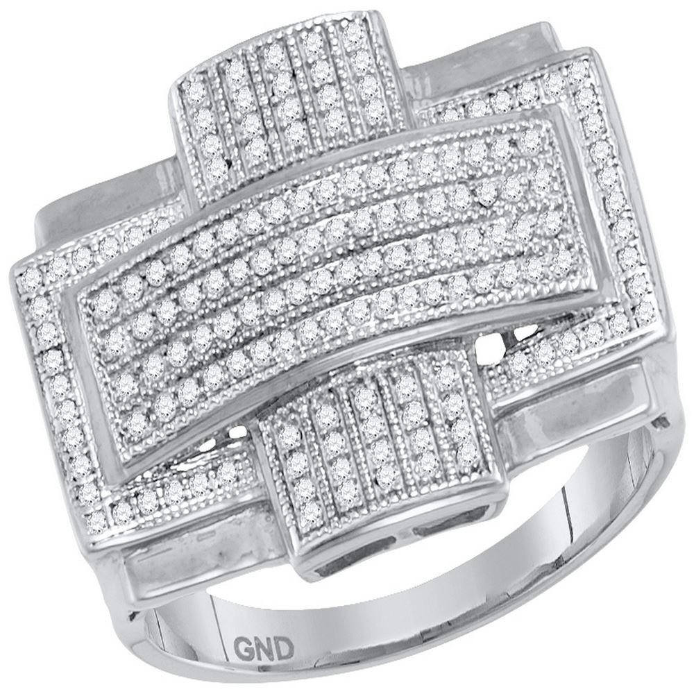 REF-67Y4X- SKU: GD68662 ---- 0.50 CTWMens Diamond Convex Cross Rectangle Cluster Ring 10KT White Gold