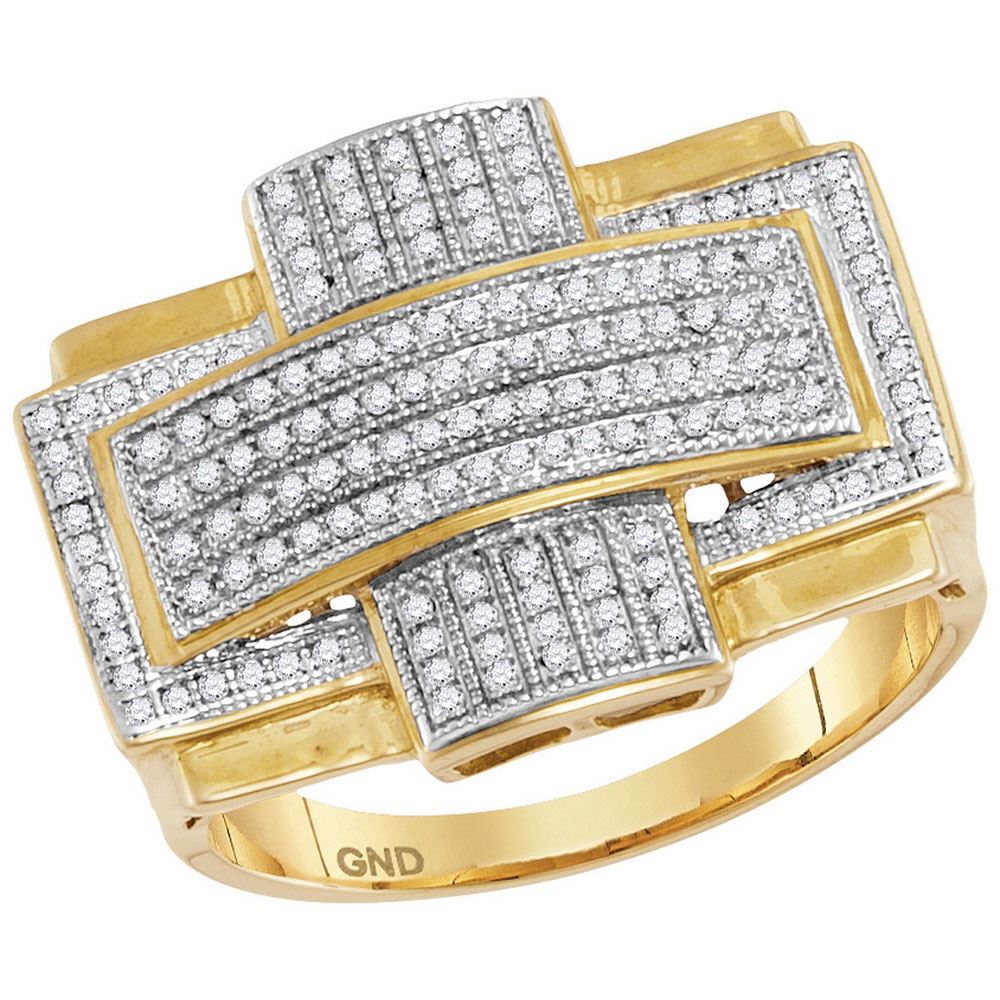 REF-67F4N- SKU: GD68661 ---- 0.50 CTWMens Diamond Convex Cross Rectangle Cluster Ring 10KT Yellow Gold
