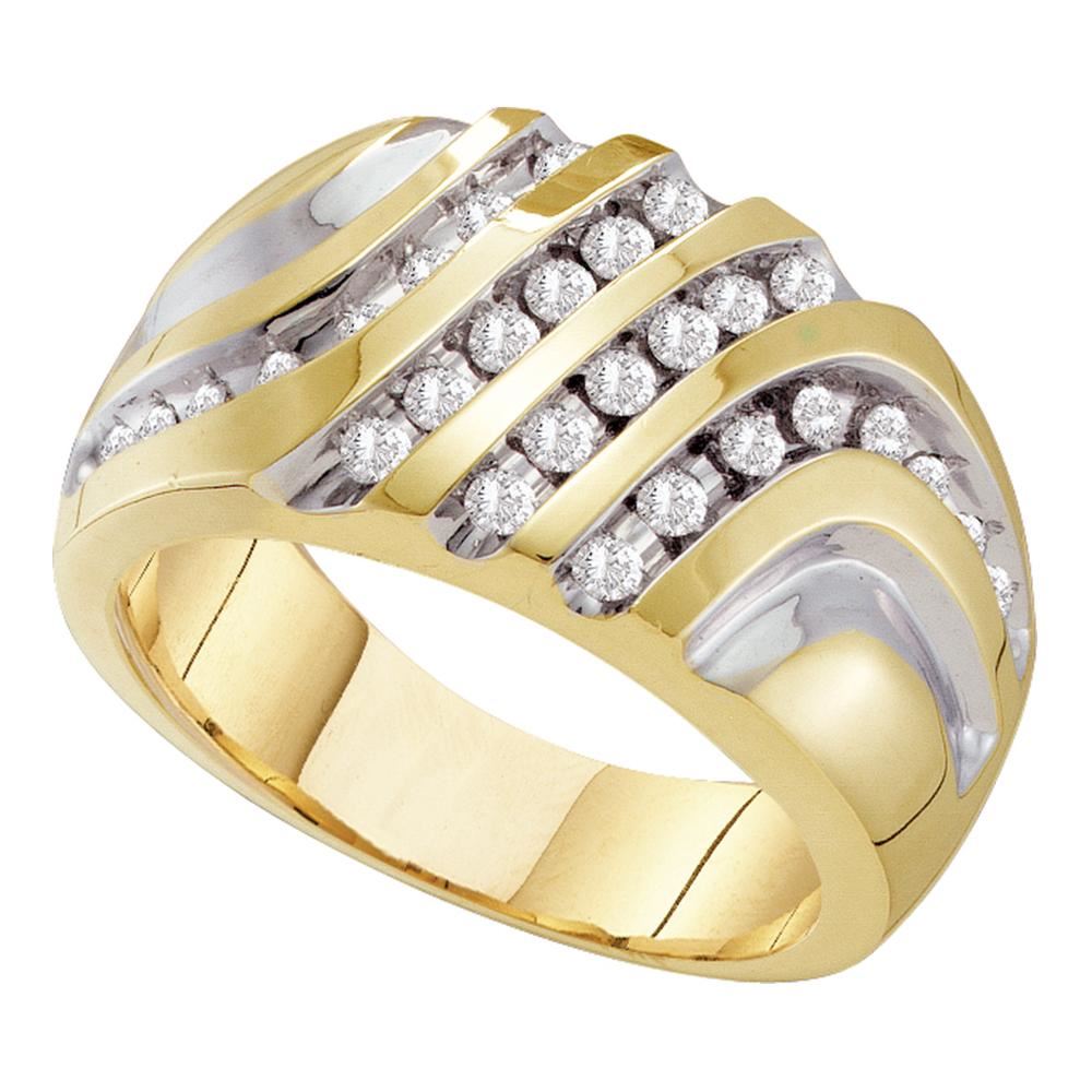 REF-49K5W- SKU: GD26428 ---- 0.50 CTWMens Diamond Four Row Two-tone Cluster Ring 10KT Yellow Gold