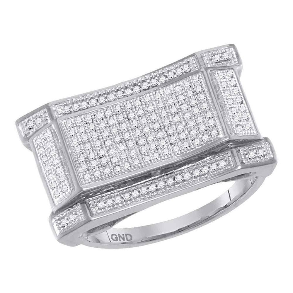 REF-71W9K- SKU: GD68598 ---- 0.50 CTWMens Pave-set Diamond Concave Rectangle Cluster Ring 10KT White Gold