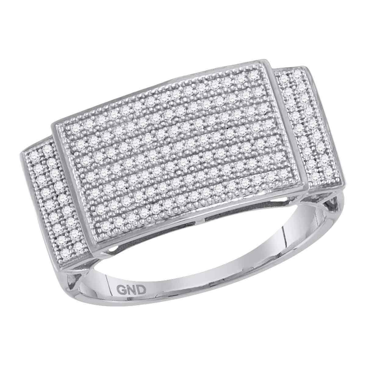 REF-52N4F- SKU: GD68632 ---- 0.50 CTWMens Pave-set Diamond Rectangle Cluster Ring 10KT White Gold
