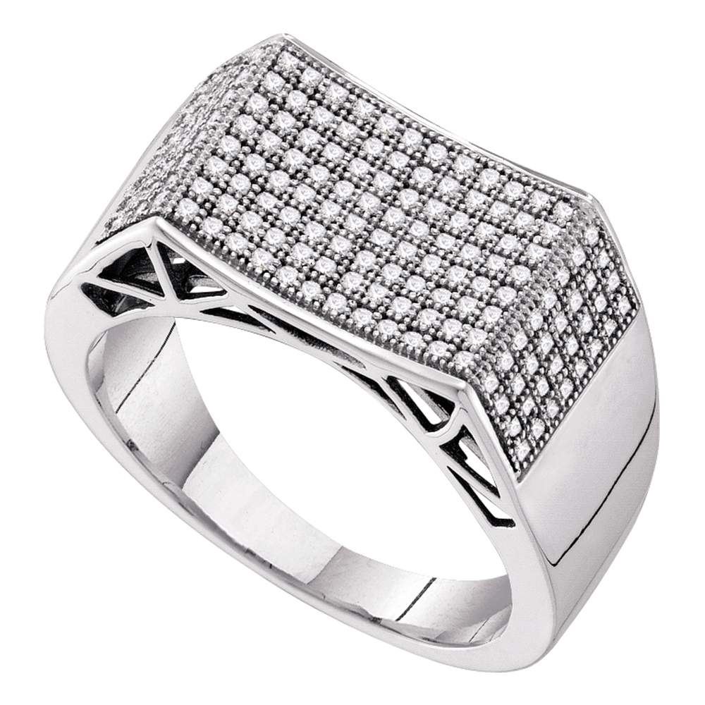 REF-52N4F- SKU: GD57745 ---- 0.50 CTWMens Pave-set Diamond Rectangle Concave Cluster Ring 10KT White Gold