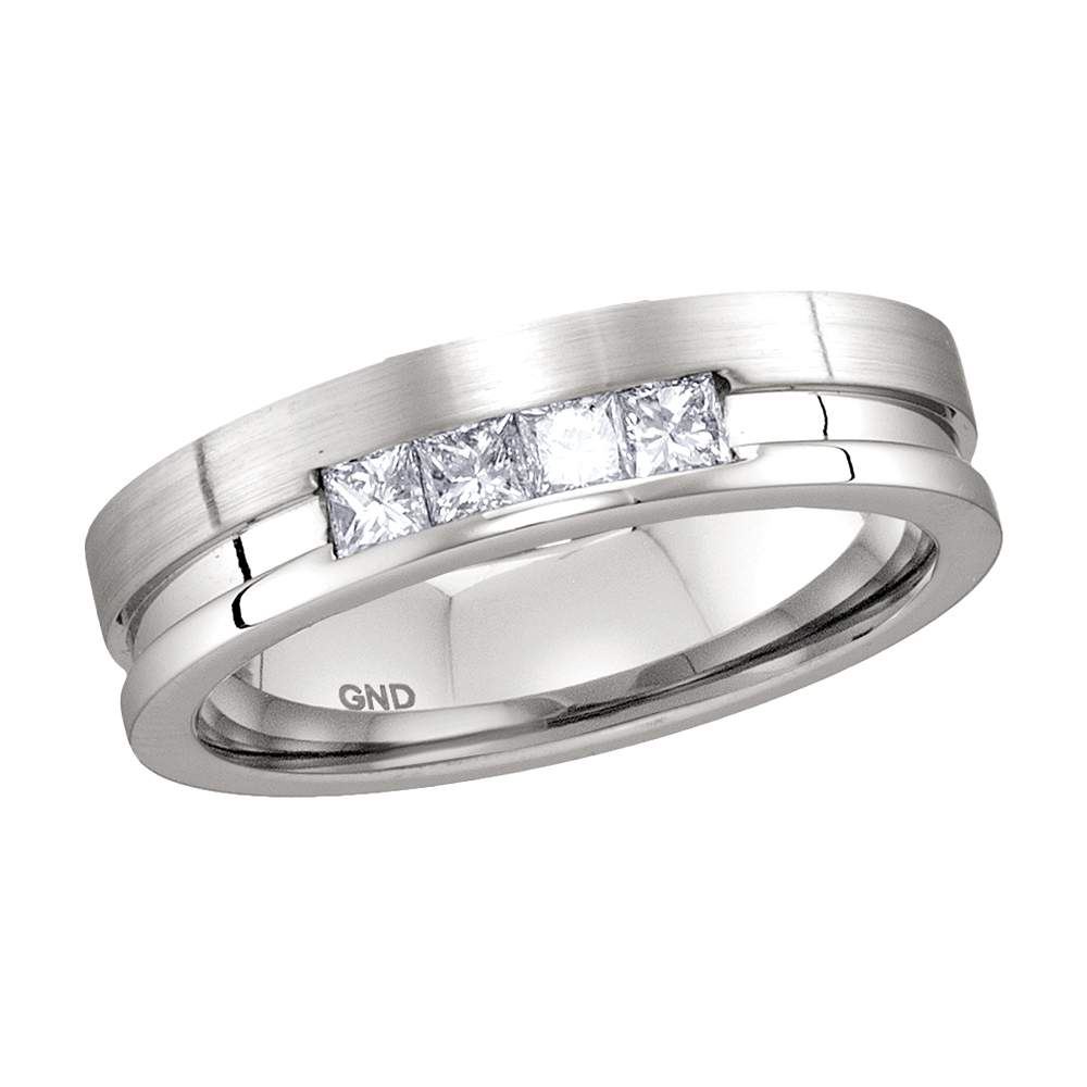 REF-120F2N- SKU: GD113255 ---- 0.50 CTWMens Princess Channel-set Diamond Single Row Ring 14KT White Gold