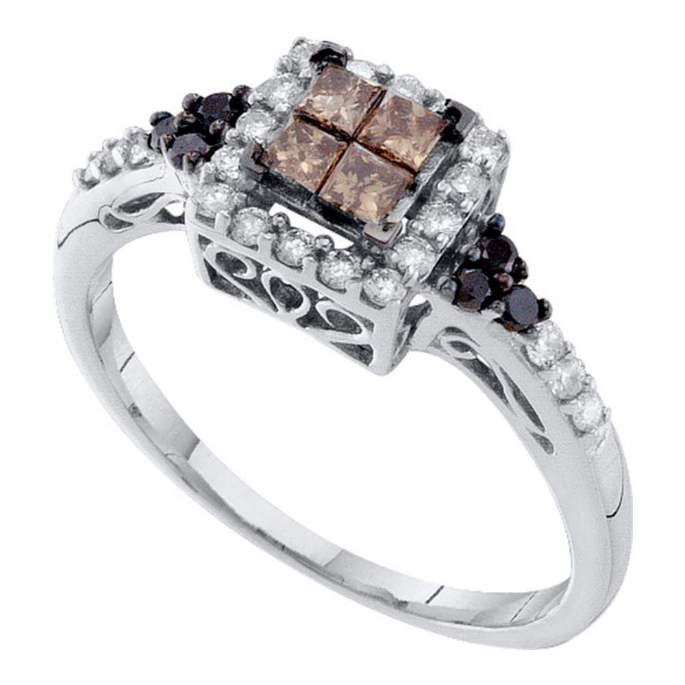 REF-41Y9X- SKU: GD53562 ---- 0.50 CTWPrincess Cognac-brown Color Diamond Cocktail Ring 14KT White Gold