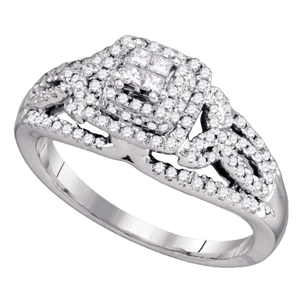 REF-67Y4X- SKU: GD75470 ---- 0.50 CTWPrincess Diamond Cluster Bridal Engagement Ring 14KT White Gold
