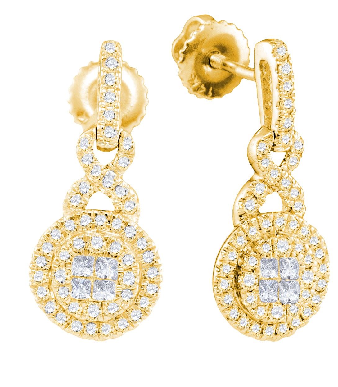 REF-59H9M- SKU: GD99784 ---- 0.50 CTWPrincess Diamond Soleil Cluster Dangle Earrings 14KT Yellow Gold