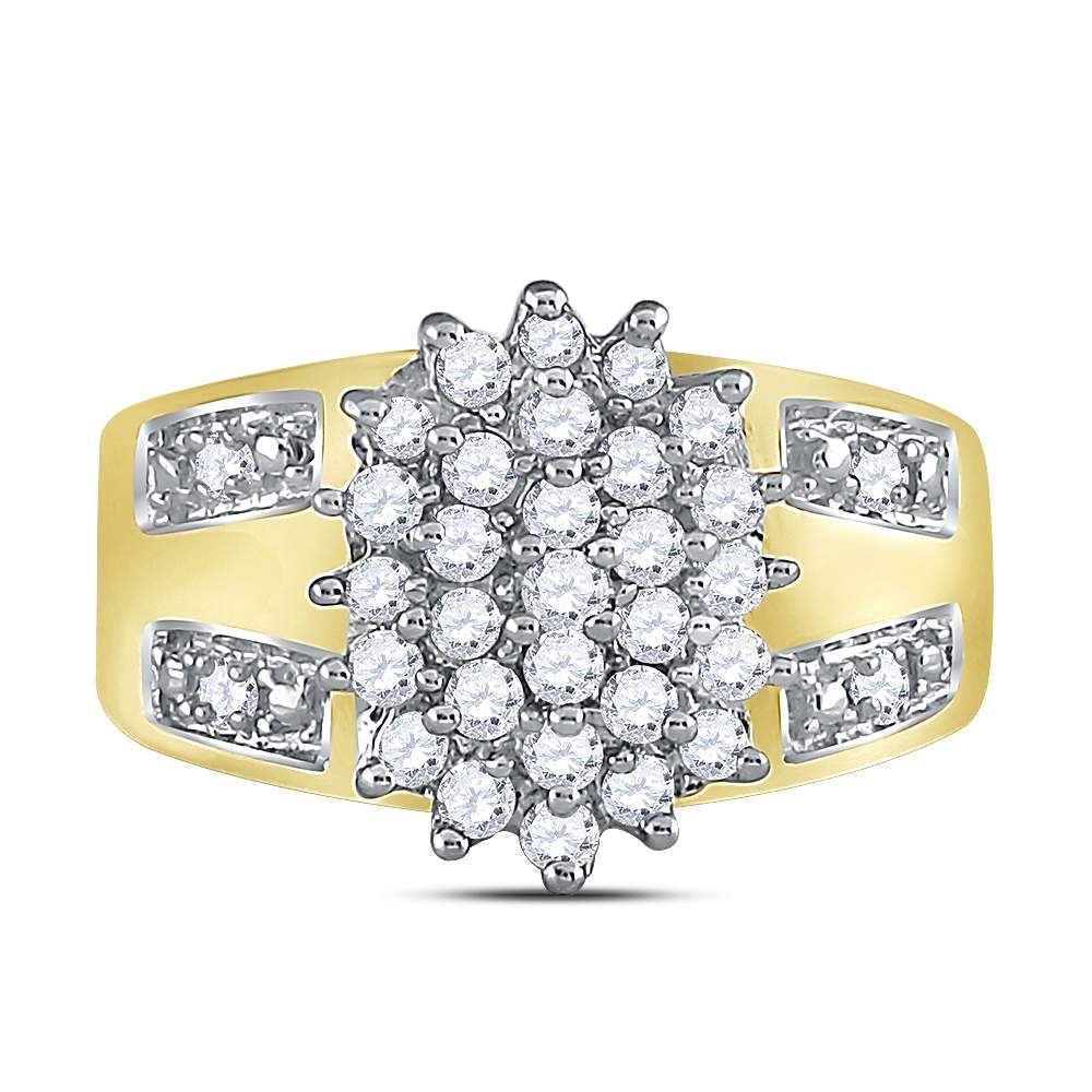 REF-33N8F- SKU: GD7647 ---- 0.50 CTWProng-set Diamond Oval Cluster Ring 10KT Yellow Gold