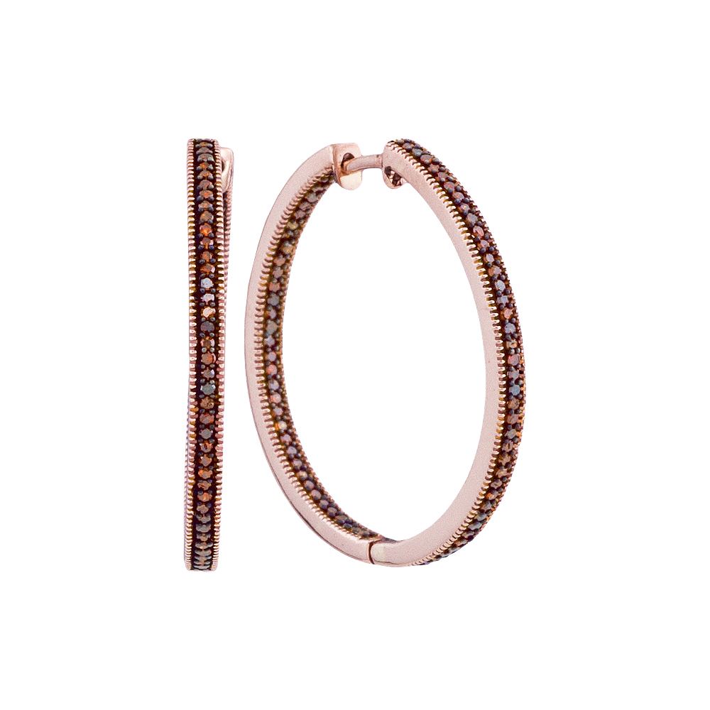 REF-59X9Y- SKU: GD93594 ---- 0.50 CTWRed Color Diamond Hoop Earrings 10KT Rose Gold