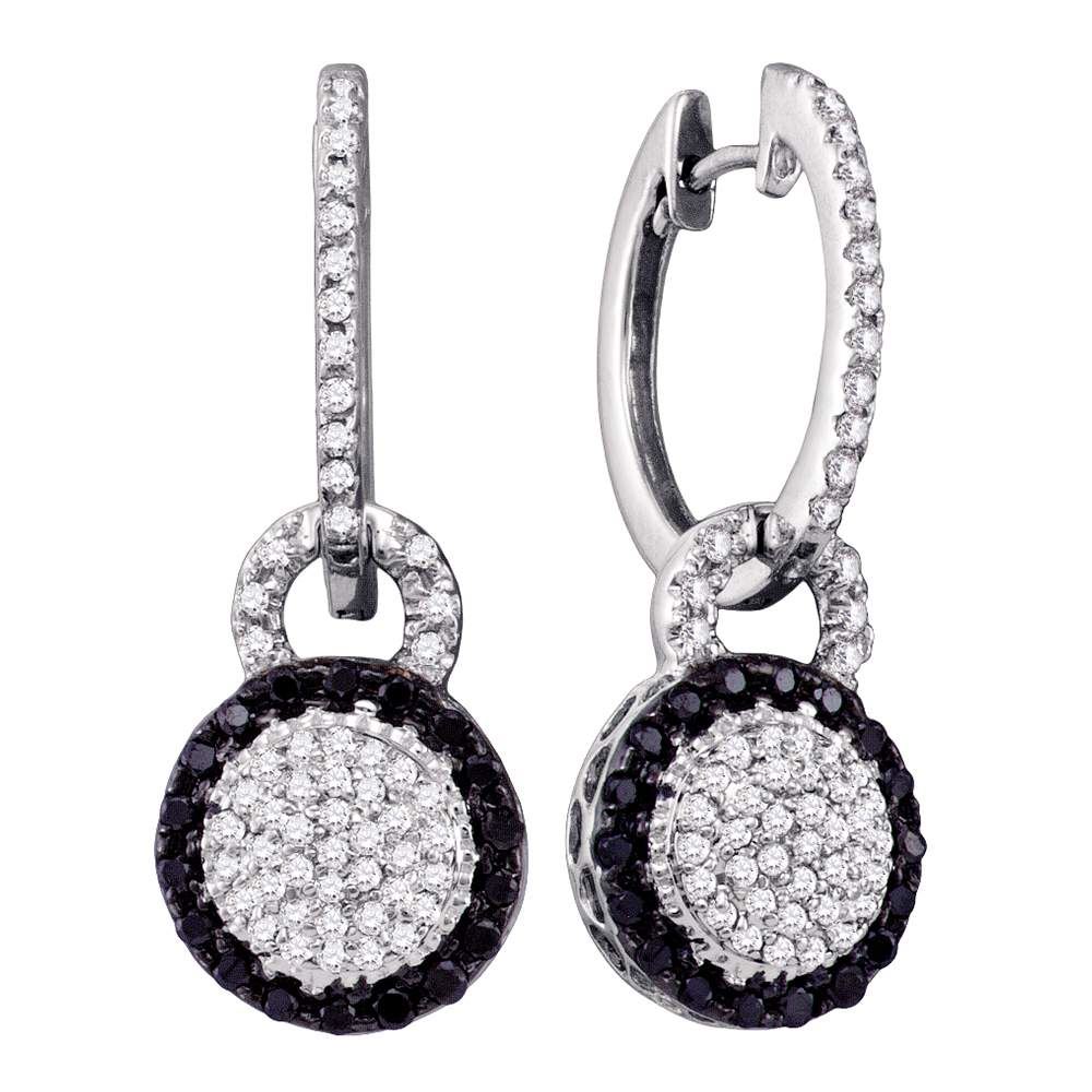 REF-44F9N- SKU: GD55455 ---- 0.50 CTWBlack Color Diamond Framed Cluster Dangle Earrings 10KT White Gold