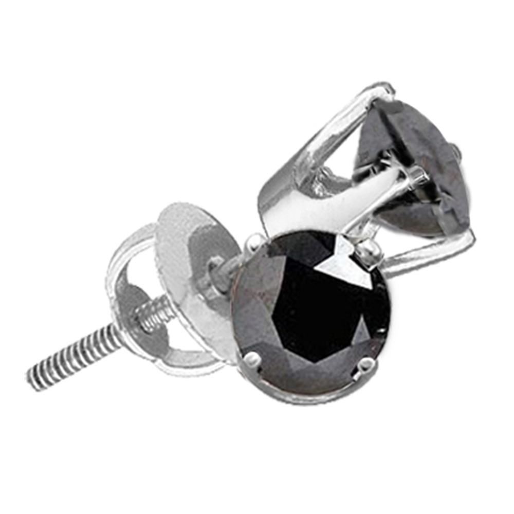 REF-14Y9X- SKU: GD60615 ---- 0.50 CTWBlack Color Diamond Solitaire Screwback Stud Earrings 14KT White Gold