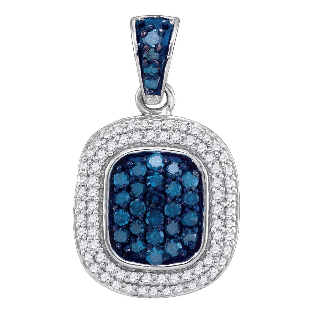 REF-24H2M- SKU: GD88887 ---- 0.50 CTWBlue Color Diamond Double Rectangle Cluster Pendant 10KT White Gold