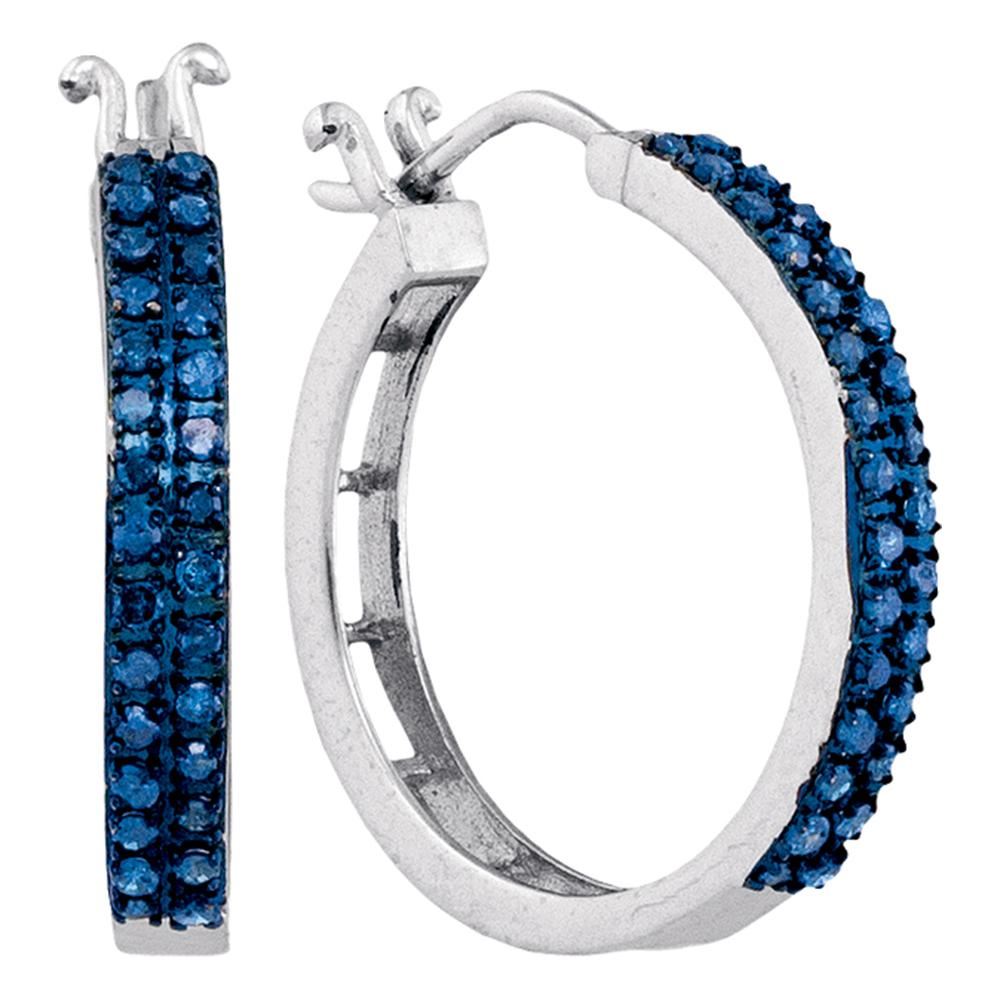 REF-37F5N- SKU: GD86341 ---- 0.50 CTWBlue Color Diamond Double Row Hoop Earrings 10KT White Gold