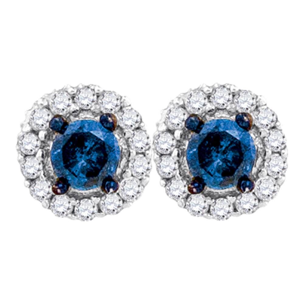 REF-26M9H- SKU: GD90220 ---- 0.50 CTWBlue Color Diamond Solitaire Circle Earrings 10KT White Gold