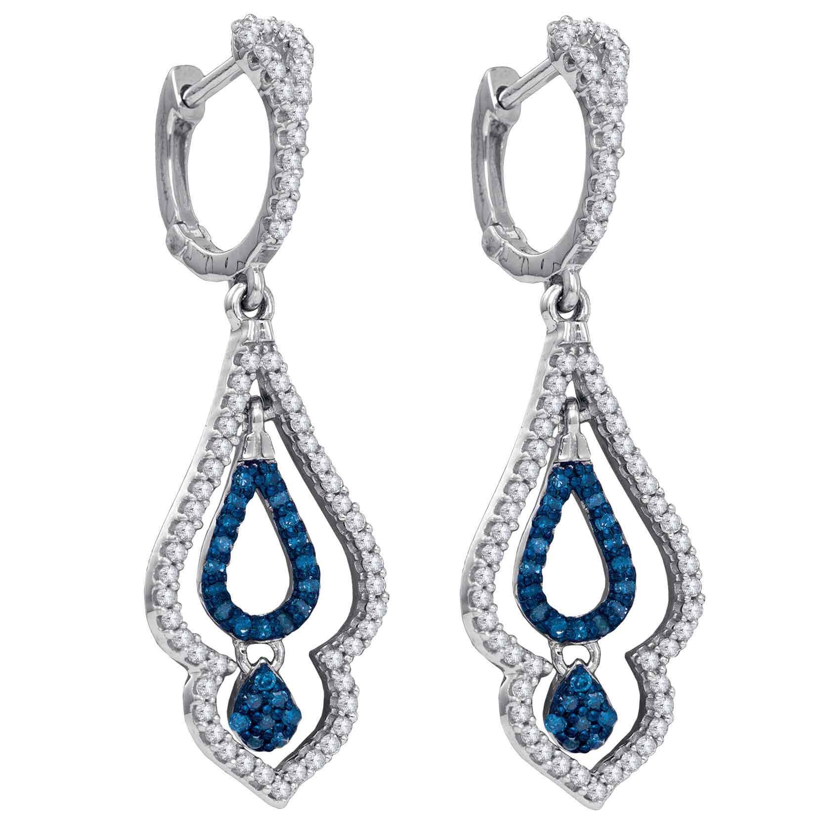 REF-41X9Y- SKU: GD84373 ---- 0.50 CTWBlue Color Diamond Spade Dangle Earrings 10KT White Gold