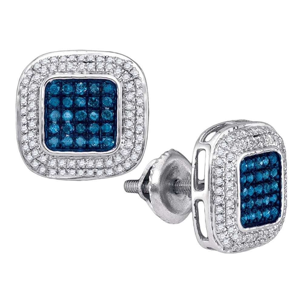 REF-34K4W- SKU: GD88925 ---- 0.50 CTWBlue Color Diamond Square Cluster Earrings 10KT White Gold
