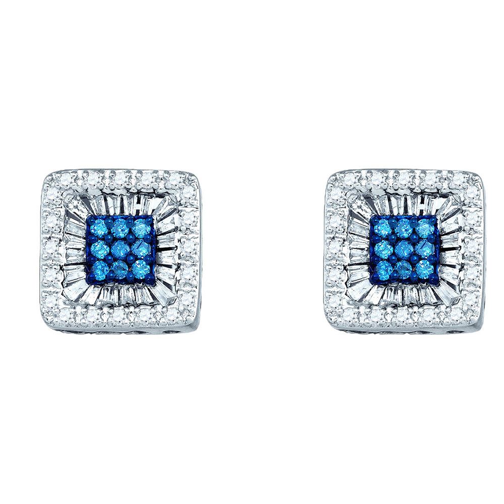 REF-43X4Y- SKU: GD75020 ---- 0.50 CTWBlue Color Diamond Square Stud Earrings 10KT White Gold