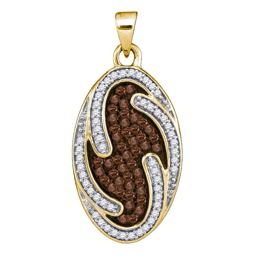 REF-25M4H- SKU: GD88685 ---- 0.50 CTWCognac-brown Color Diamond Oval Cluster Pendant 10KT Yellow Gold