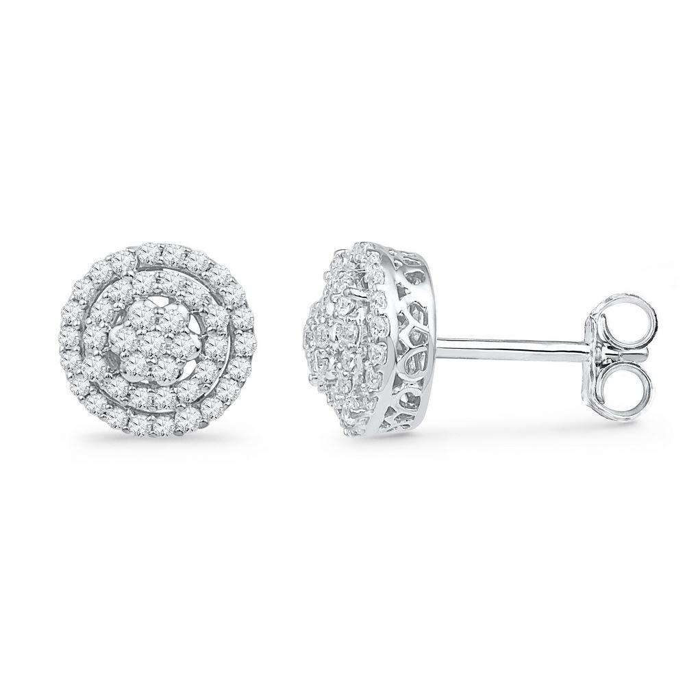 REF-37K5W- SKU: GD101914 ---- 0.50 CTWDiamond Cluster Screwback Earrings 10KT White Gold