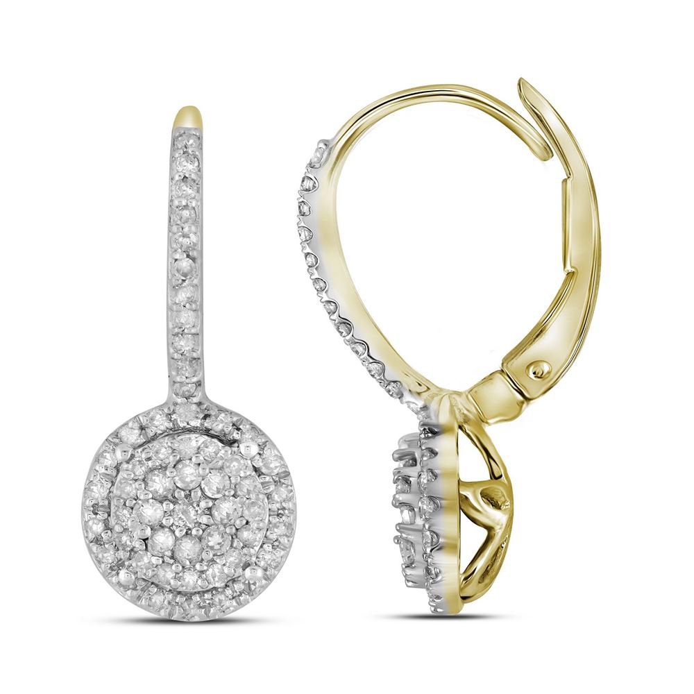 REF-34K4W- SKU: GD55828 ---- 0.50 CTWDiamond Flower Cluster Dangle Leverback Earrings 10KT Yellow Gold