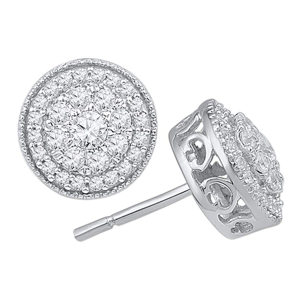 REF-49Y5X- SKU: GD108737 ---- 0.50 CTWDiamond Flower Cluster Earrings 10KT White Gold