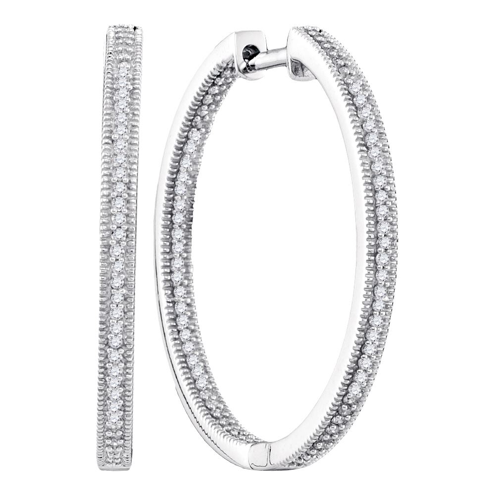 REF-49N5F- SKU: GD97710 ---- 0.50 CTWDiamond In/Out Hoop Earrings 10KT White Gold