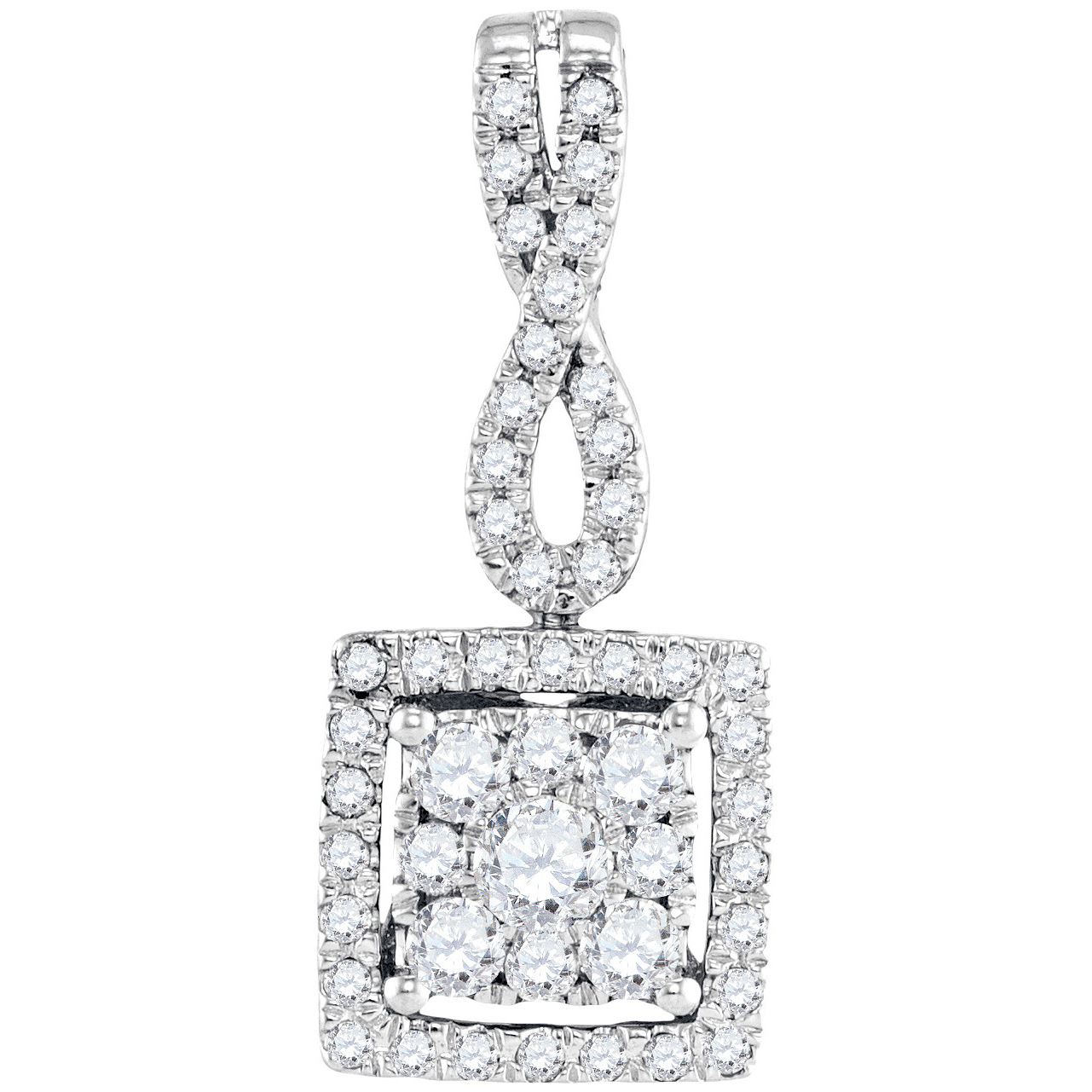REF-40Y4X- SKU: GD95943 ---- 0.50 CTWDiamond Square Cluster Pendant 10KT White Gold