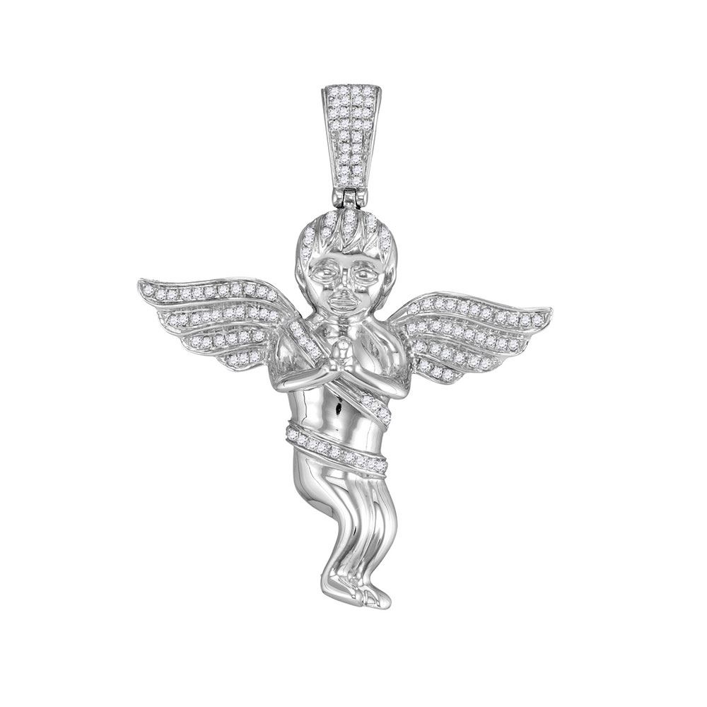REF-52W4K- SKU: GD102712 ---- 0.50 CTWMens Diamond Praying Angel Cherub Charm Pendant 10KT White Gold