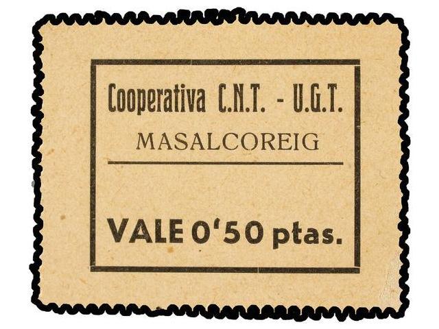 0,50 Pesetas. - COOPERATIVA C.N.T.-U..G.T. MASALCOREIG. - Sin firma ni sello. T-No cat. este valor. EBC+. - -