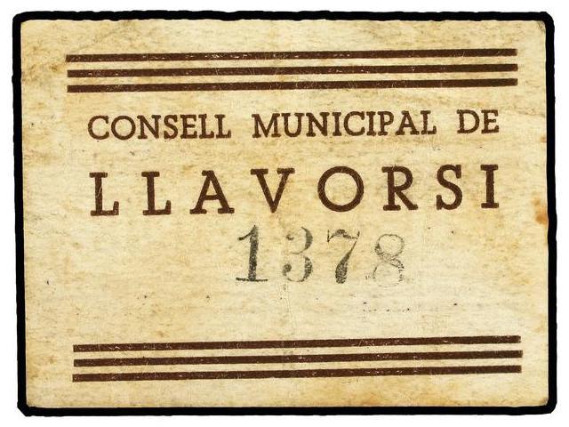 0,50 Pessetes. S/F. C.M. de LLAVORSI. Cartón. (Algo sucio). MUY ESCASO. AT-1340 ;T-1535. MBC+.