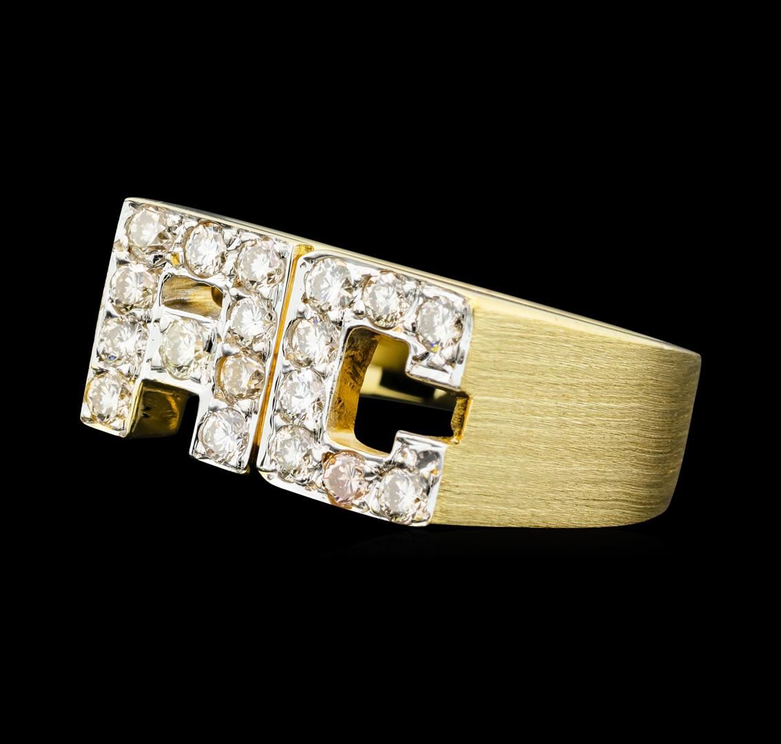 One diamond "AC" initial ring featuring: 14KT yellow gold weighing 11.20 grams containing diamonds weighing 0.50ctw.