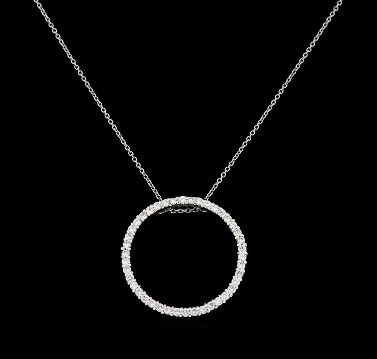 One lady's pendant with chain featuring: 18KT white gold weighing 4.7 grams containing diamonds weighing 0.50ctw. The pendant has a chain measuring approximately eighteen inches in length.