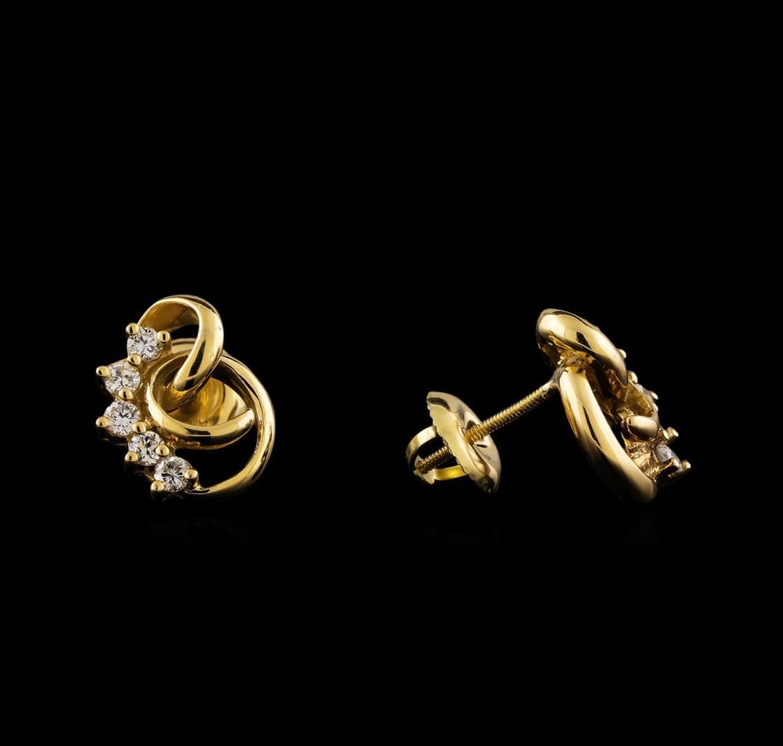 One pair of earrings featuring: 14KT yellow gold weighing 2.55 grams containing diamonds weighing 0.50ctw.