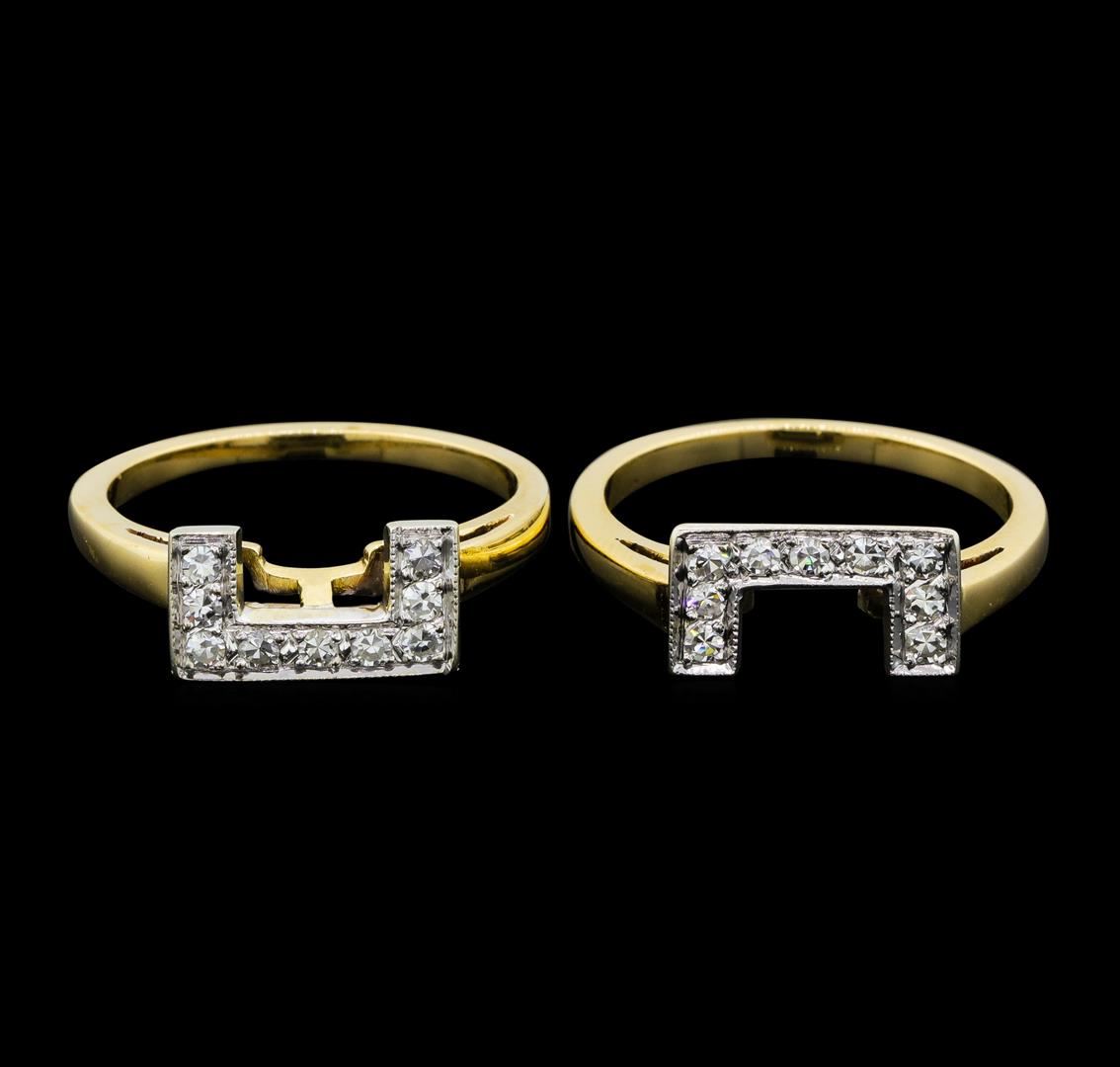 One pair of lady's interlocking rings featuring: 14KT yellow gold weighing 6.0 grams containing diamonds weighing 0.50ctw.